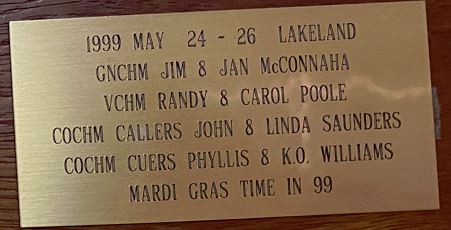 | 1999 | LAKELAND | MARDI GRAS TIME IN 99 | JIM & JAN McCONNAHA | RANDY & CAROL POOLE | JOHN & LINDA SAUNDERS | PHYLLIS & k.o. Williams |  |