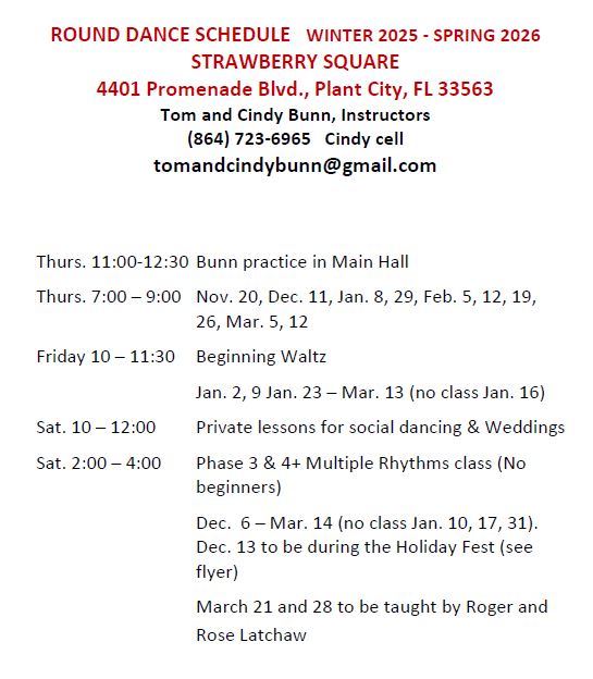 View the 2025-2026 Round Dance Schedule at Strawberry Square