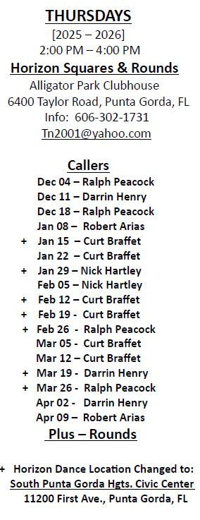NOTE THE NEW DANCE LOCATIONS IN PUNTA GORDA FOR 2025-2026 !!