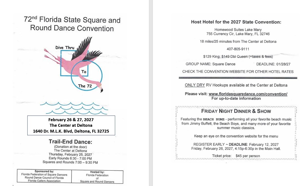 72'nd Florida State Square & Round Dance Convention February 26-27, 2027 Trail-End Dance February 25, 2027