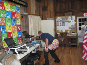 | The strip tease begins!! | Mike's shirt is OFF! |