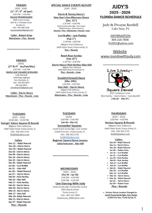 JUDY'S 2025-2026 FLORIDA DANCE SCHEDULE & PRINTABLE TRI-FOLD - UPDATED 10/31/2025
